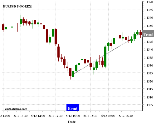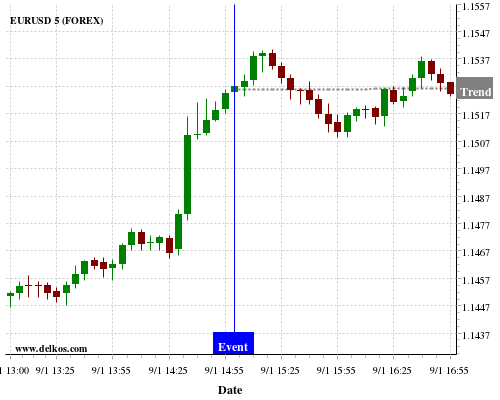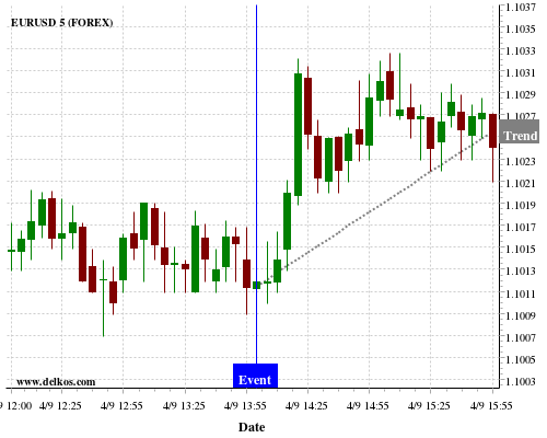 If the number is equal to than economists’ consensus there is a 72.72% probability that EURUSD will trend up following the news event.