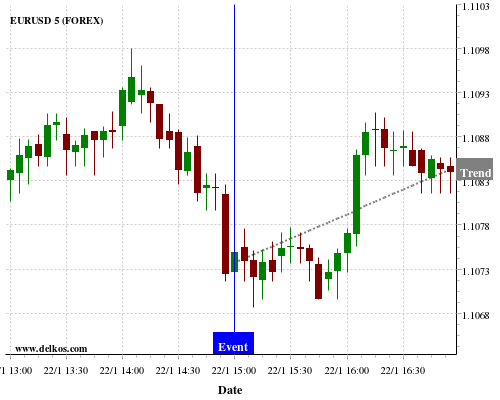 If the number is equal to than economists’ consensus there is a 72.72% probability that EURUSD will trend up following the news event.