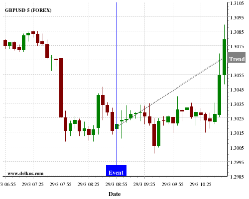 If the number is equal to than economists’ consensus there is a 72.72% probability that GBPUSD will trend up following the news event.