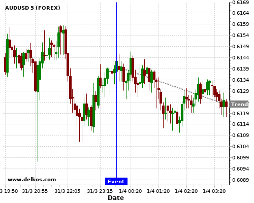 If the number is greater than than economists’ consensus there is a 75% probability that AUDUSD will trend down following the news event.