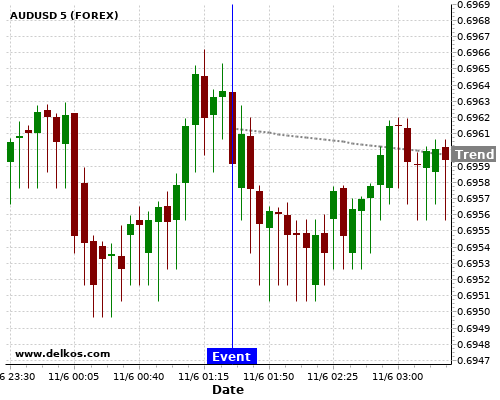 If the number is greater than than economists’ consensus there is a 75% probability that AUDUSD will trend down following the news event.