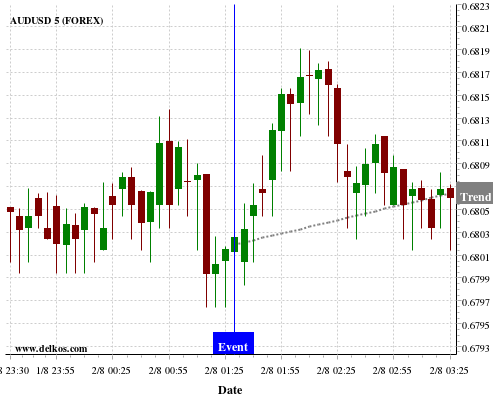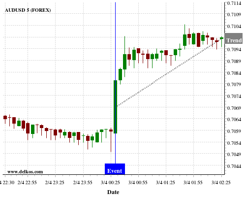 If the number is greater than than economists’ consensus there is a 75% probability that AUDUSD will trend up following the news event.