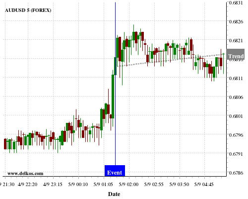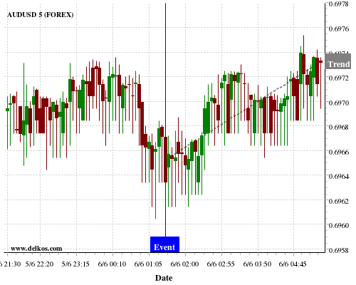 If the number is less than than economists’ consensus there is a 75% probability that AUDUSD will trend up following the news event.