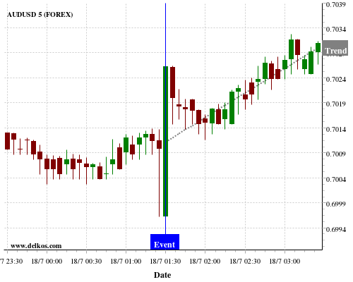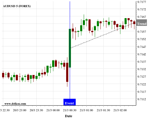 If the number is less than than economists’ consensus there is a 75% probability that AUDUSD will trend up following the news event.
