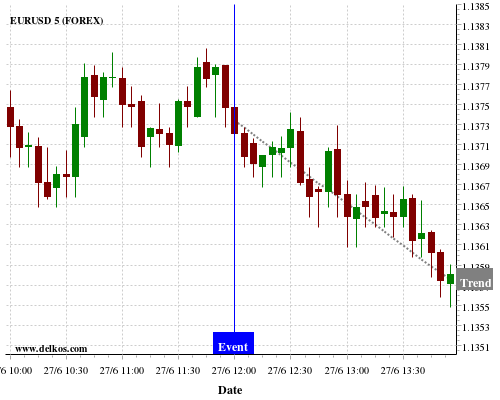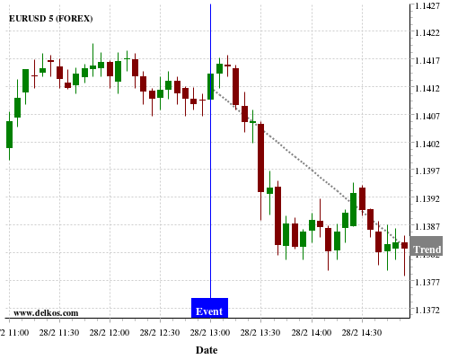 If the number is greater than than economists’ consensus there is a 75% probability that EURUSD will trend down following the news event.