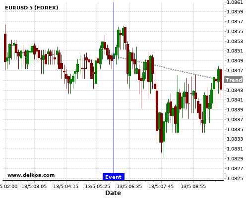 If the number is less than than economists’ consensus there is a 75% probability that EURUSD will trend down following the news event.