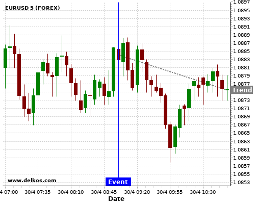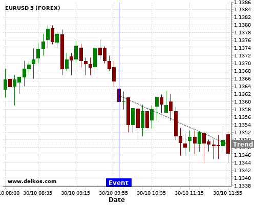 If the number is less than than economists’ consensus there is a 75% probability that EURUSD will trend down following the news event.