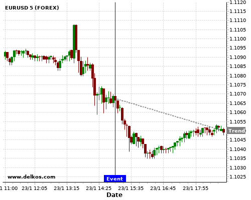 If the number is less than than economists’ consensus there is a 75% probability that EURUSD will trend down following the news event.