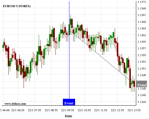 If the number is greater than than economists’ consensus there is a 75% probability that EURUSD will trend down following the news event.