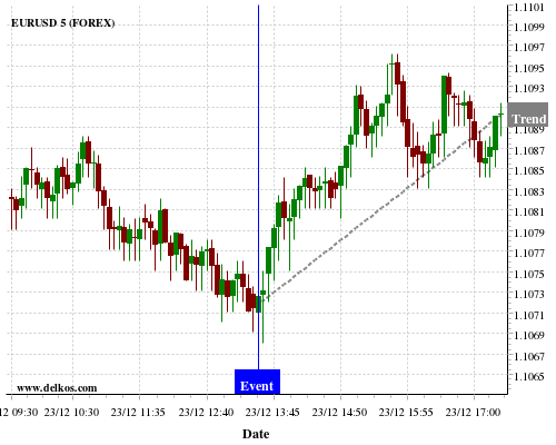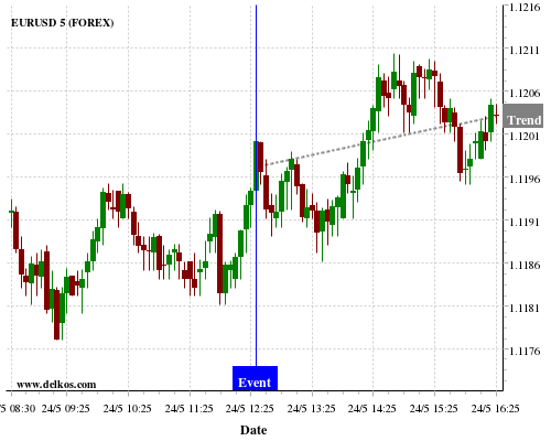 If the number is less than than economists’ consensus there is a 75% probability that EURUSD will trend up following the news event.
