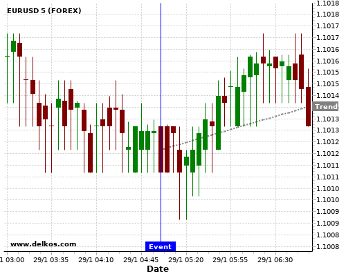 If the number is less than than economists’ consensus there is a 75% probability that EURUSD will trend up following the news event.