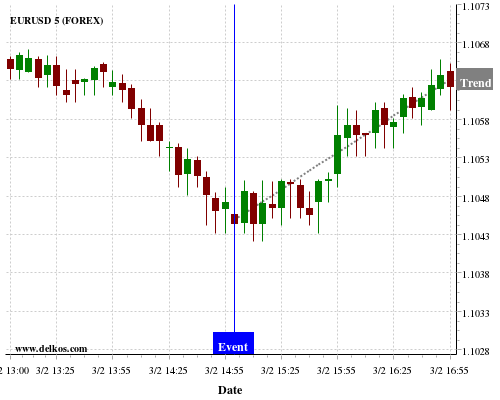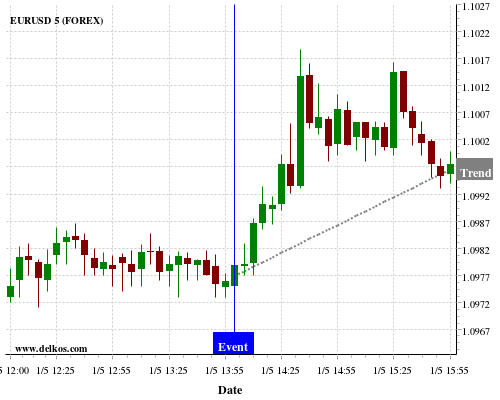 If the number is greater than than economists’ consensus there is a 75% probability that EURUSD will trend up following the news event.