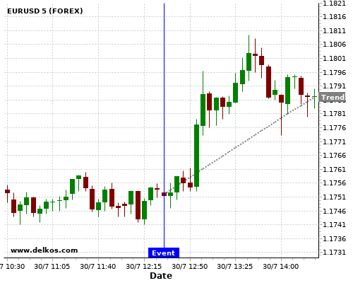 If the number is greater than than economists’ consensus there is a 75% probability that EURUSD will trend up following the news event.