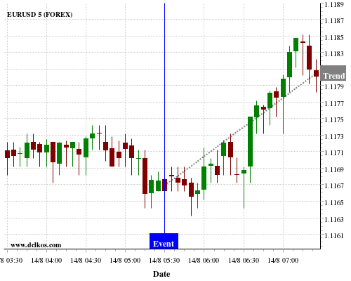 If the number is less than than economists’ consensus there is a 75% probability that EURUSD will trend up following the news event.