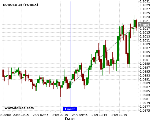 If the number is greater than than economists’ consensus there is a 75% probability that EURUSD will trend up following the news event.