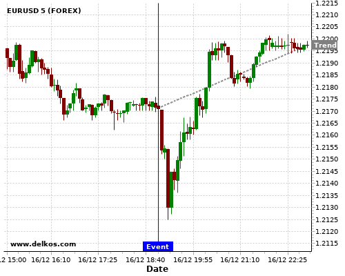 This probability is based on the last 12 US Fed Interest Rate Decision events, in which 9 of the last 12 events where the actual number was equal to than the economist consensus resulted in an up trend of EURUSD.