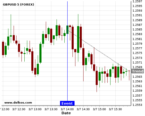 If the number is less than than economists’ consensus there is a 75% probability that GBPUSD will trend down following the news event.