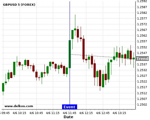If the number is equal to than economists’ consensus there is a 75% probability that GBPUSD will trend down following the news event.