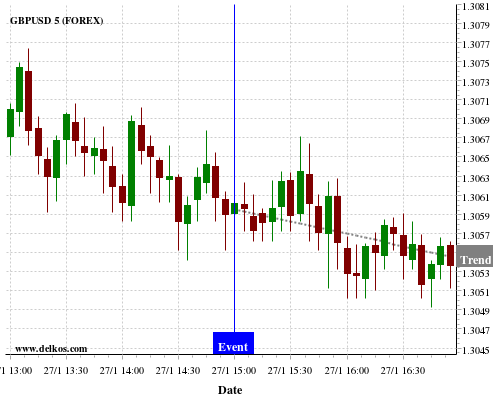 If the number is less than than economists’ consensus there is a 75% probability that GBPUSD will trend down following the news event.