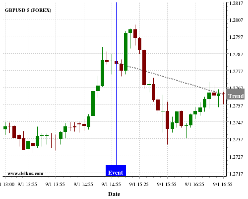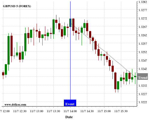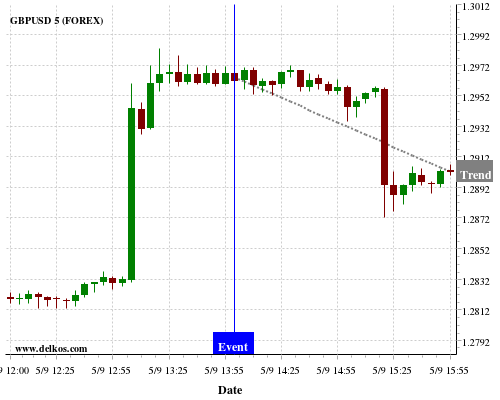 If the number is equal to than economists’ consensus there is a 75% probability that GBPUSD will trend down following the news event.
