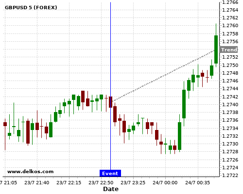 If the number is less than than economists’ consensus there is a 75% probability that GBPUSD will trend up following the news event.
