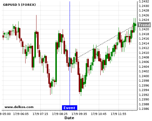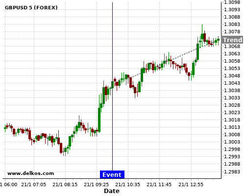 If the number is greater than than economists’ consensus there is a 75% probability that GBPUSD will trend up following the news event.