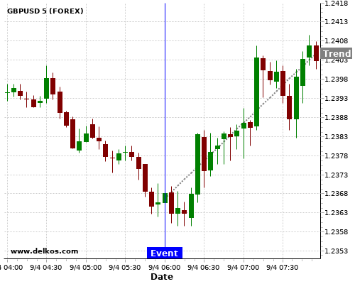 If the number is less than than economists’ consensus there is a 75% probability that GBPUSD will trend up following the news event.