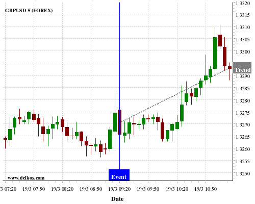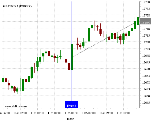 If the number is greater than than economists’ consensus there is a 75% probability that GBPUSD will trend up following the news event.
