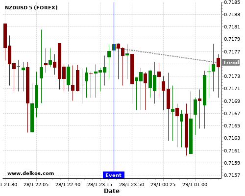 If the number is less than than economists’ consensus there is a 75% probability that NZDUSD will trend down following the news event.