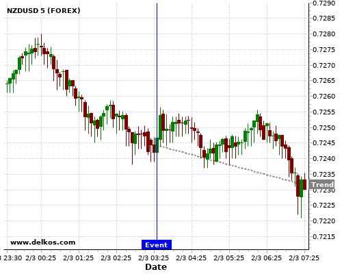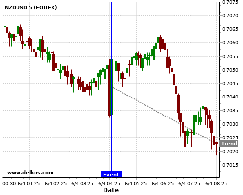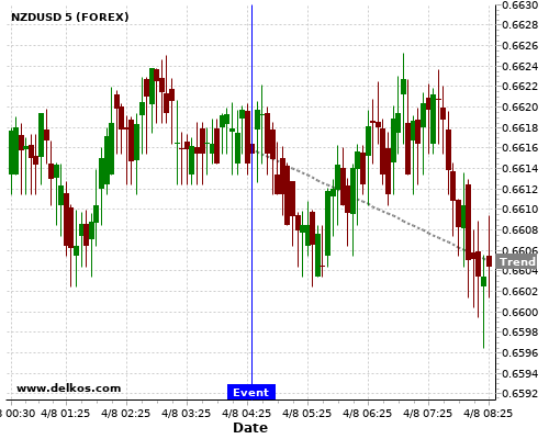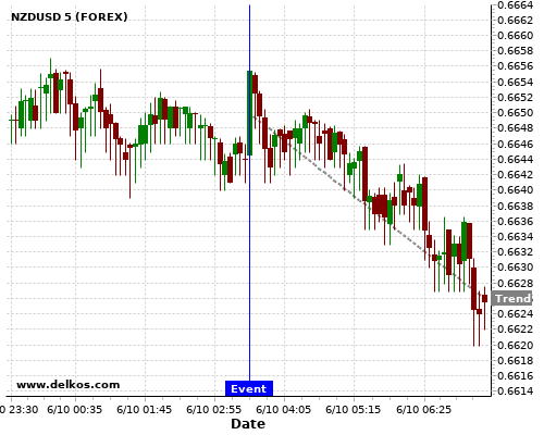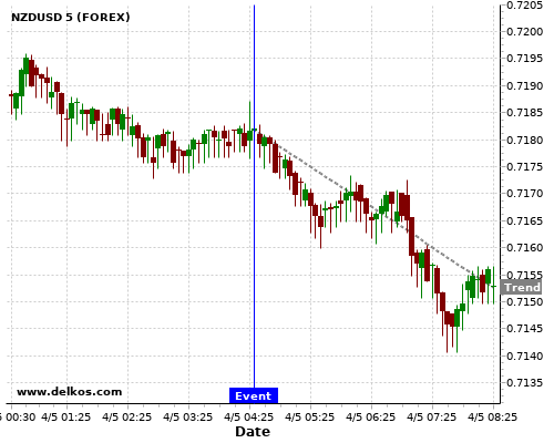 If the number is equal to than economists’ consensus there is a 75% probability that NZDUSD will trend down following the news event.