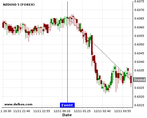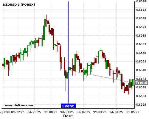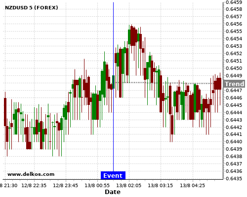 If the number is greater than than economists’ consensus there is a 75% probability that NZDUSD will trend down following the news event.