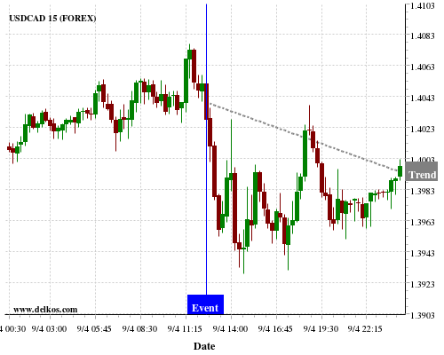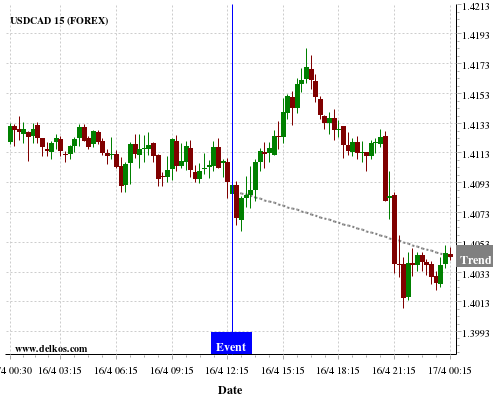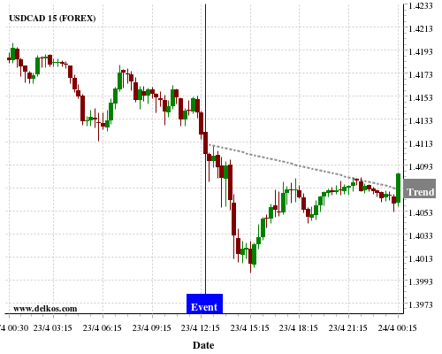 If the number is less than than economists’ consensus there is a 75% probability that USDCAD will trend down following the news event.