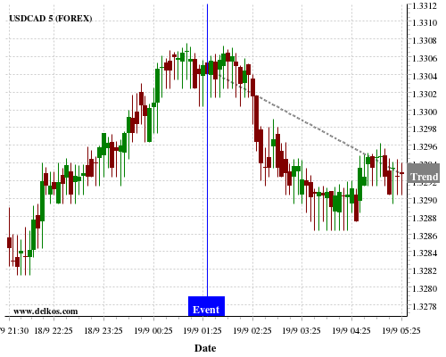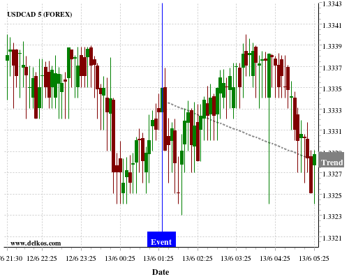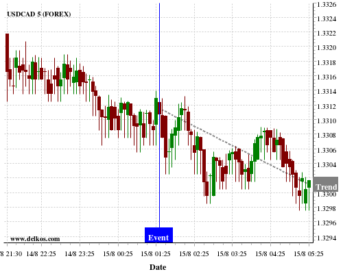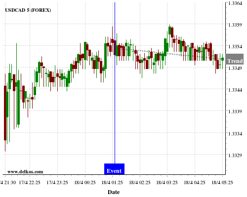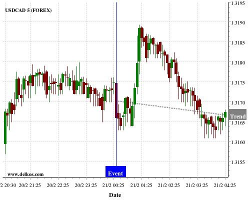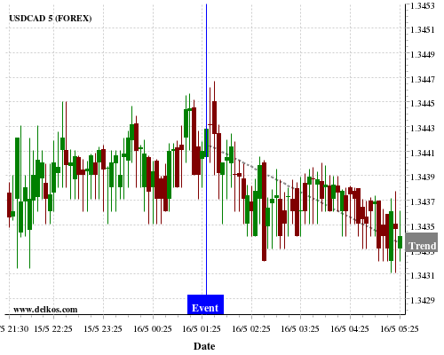 If the number is greater than than economists’ consensus there is a 75% probability that USDCAD will trend down following the news event.