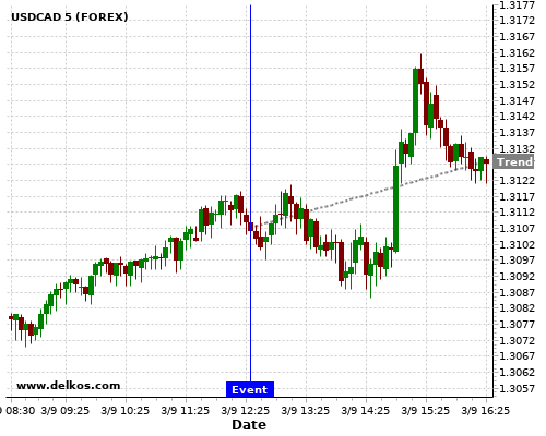 If the number is less than than economists’ consensus there is a 75% probability that USDCAD will trend up following the news event.