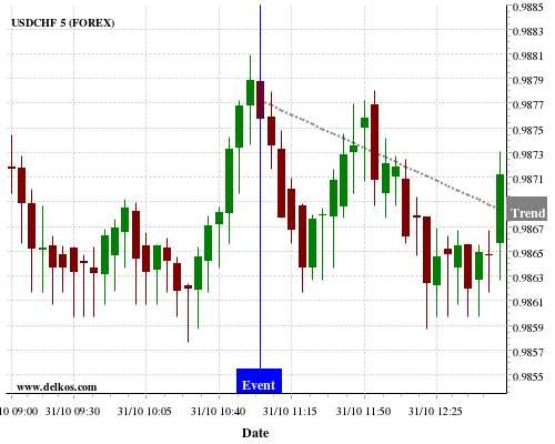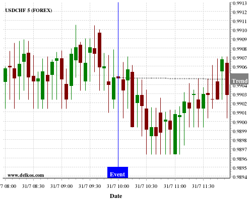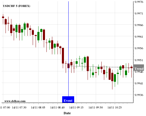 If the number is greater than than economists’ consensus there is a 75% probability that USDCHF will trend down following the news event.