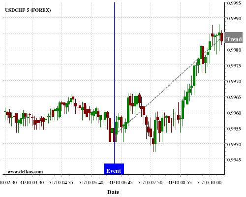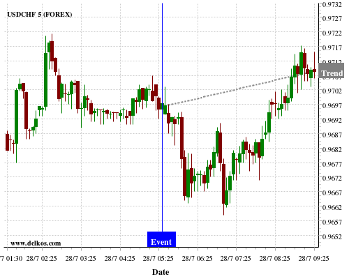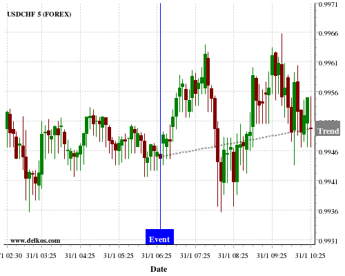 If the number is equal to than economists’ consensus there is a 75% probability that USDCHF will trend up following the news event.