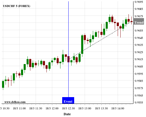 If the number is greater than than economists’ consensus there is a 75% probability that USDCHF will trend up following the news event.