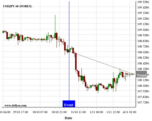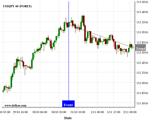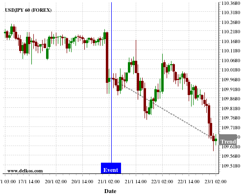 If the number is equal to than economists’ consensus there is a 75% probability that USDJPY will trend down following the news event.