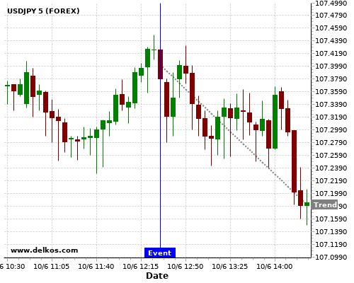 If the number is less than than economists’ consensus there is a 75% probability that USDJPY will trend down following the news event.