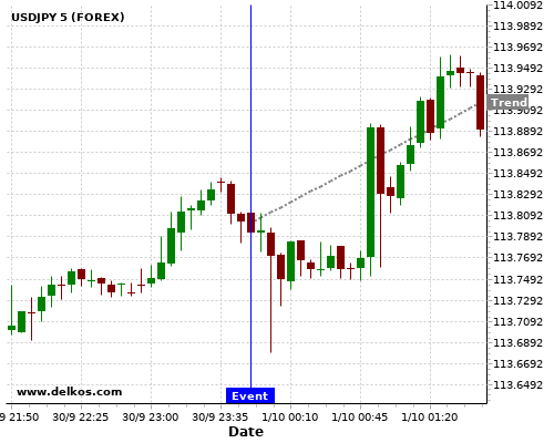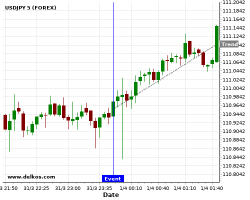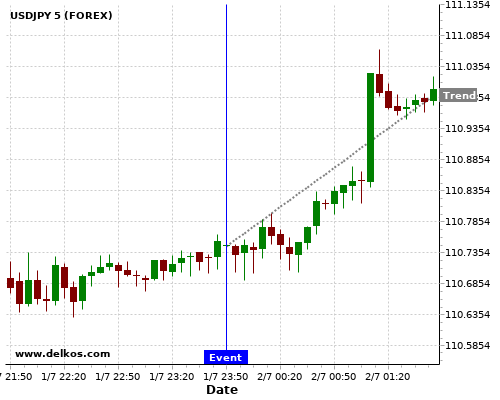 If the number is less than than economists’ consensus there is a 75% probability that USDJPY will trend up following the news event.