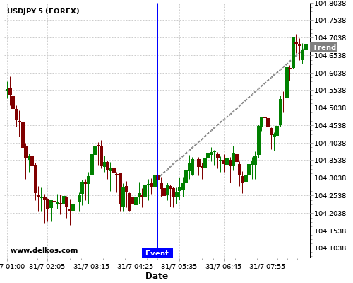 If the number is greater than than economists’ consensus there is a 75% probability that USDJPY will trend up following the news event.