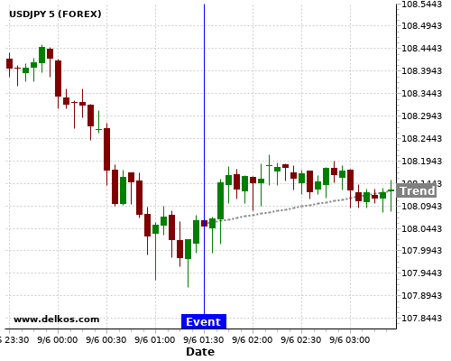 If the number is greater than than economists’ consensus there is a 75% probability that USDJPY will trend up following the news event.