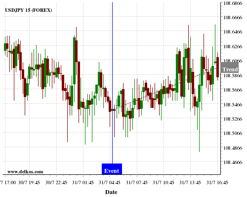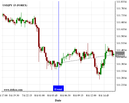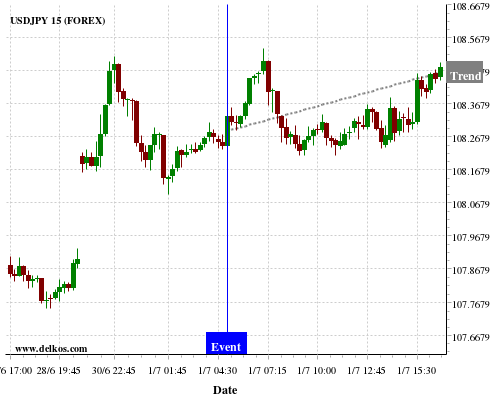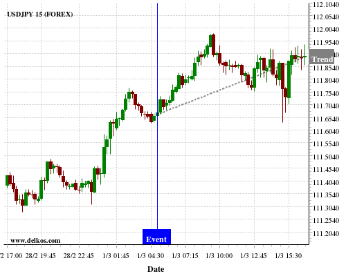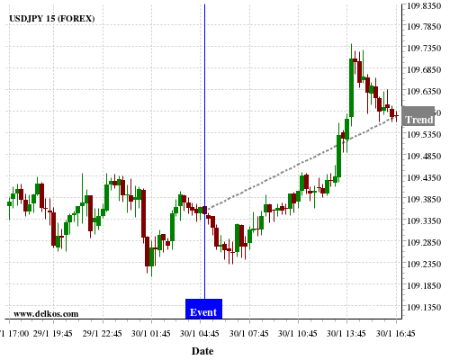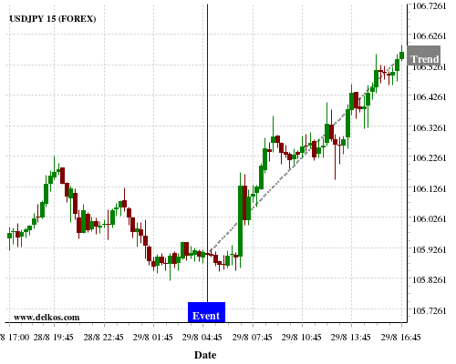 If the number is less than than economists’ consensus there is a 75% probability that USDJPY will trend up following the news event.