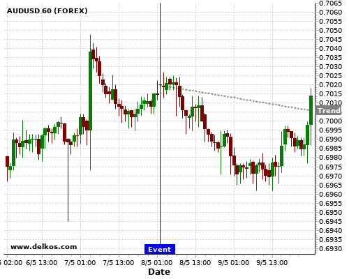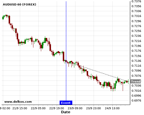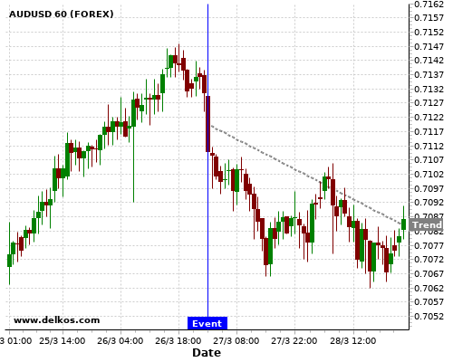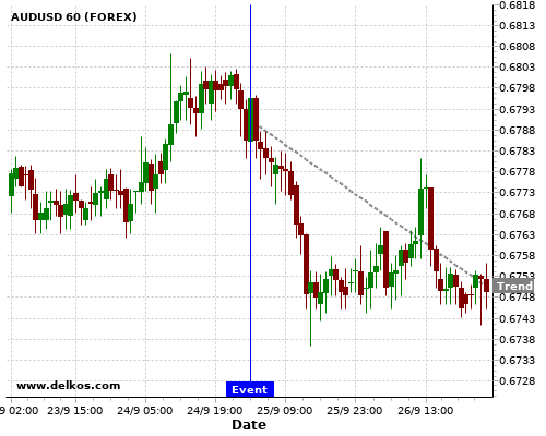 If the number is equal to than economists’ consensus there is a 77.77% probability that AUDUSD will trend down following the news event.