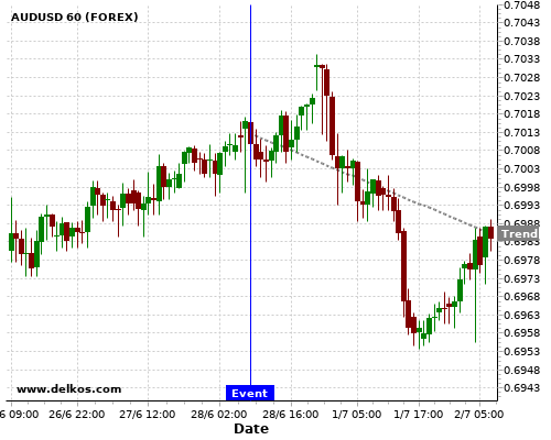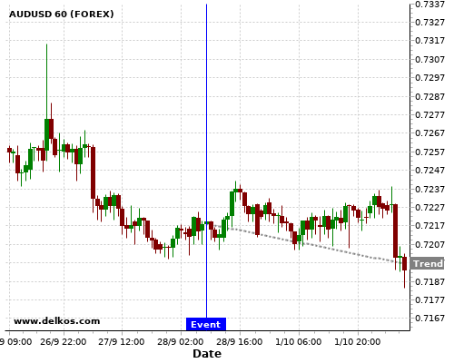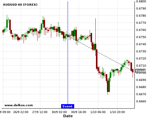 If the number is equal to than economists’ consensus there is a 77.77% probability that AUDUSD will trend down following the news event.