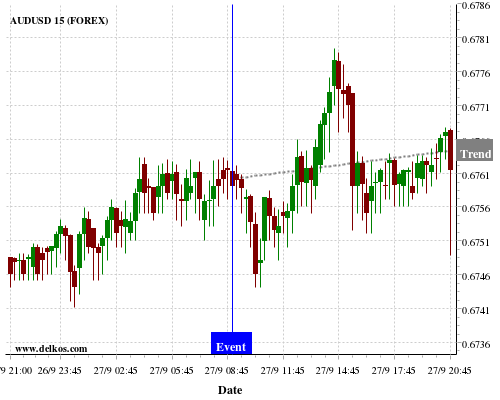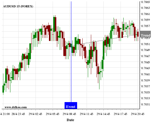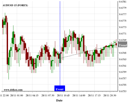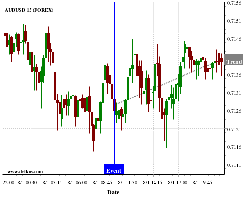 If the number is less than than economists’ consensus there is a 77.77% probability that AUDUSD will trend up following the news event.