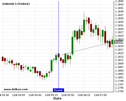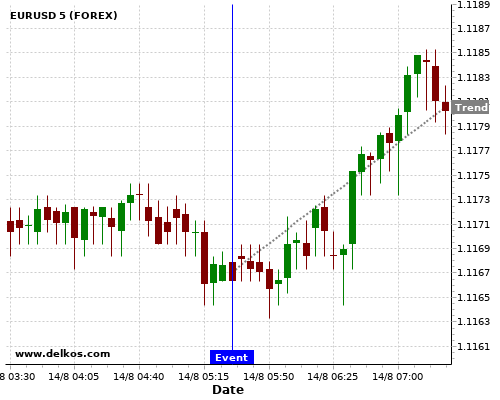 If the number is less than than economists’ consensus there is a 77.77% probability that EURUSD will trend up following the news event.