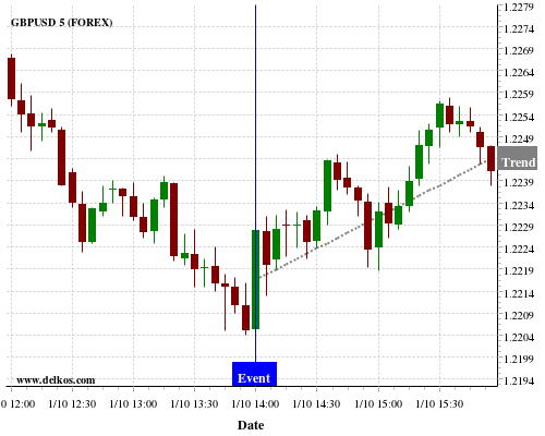 If the number is less than than economists’ consensus there is a 77.77% probability that GBPUSD will trend up following the news event.