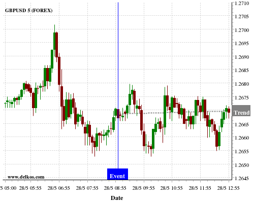 This probability is based on the last 12 EMU Business Confidence events, in which 7 of the last 9 events where the actual number was less than than the economist consensus resulted in an up trend of GBPUSD.