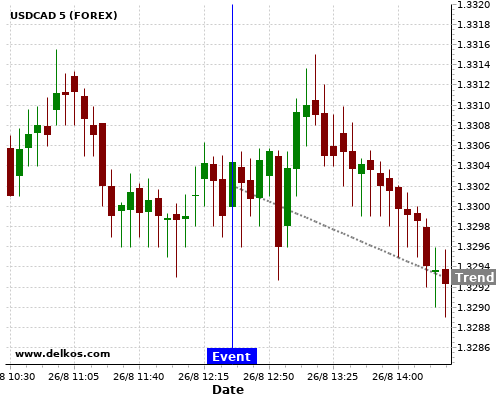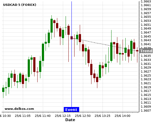 If the number is greater than than economists’ consensus there is a 77.77% probability that USDCAD will trend down following the news event.